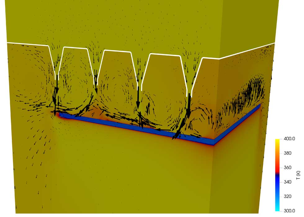 Zusammen mit dem Kunden Exentis Group AG wurde ein Nachrüstkit für die von einem Lieferanten bezogenen Trockner entwickelt. Dadurch konnte die Trocknungszeit halbiert werden für die im 3D-Siebdruck-Verfahren hergestellten Bauteile von Exentis – bei gleichzeitig massiv verbesserter Homogenität der Trocknung über den gesamten Druckbereich (Standardabweichung um 70 % reduziert). Dies wurde im Wesentlichen durch die neue, mittels Simulation optimierte Strömungsführung im Konvektionstrockner erreicht.